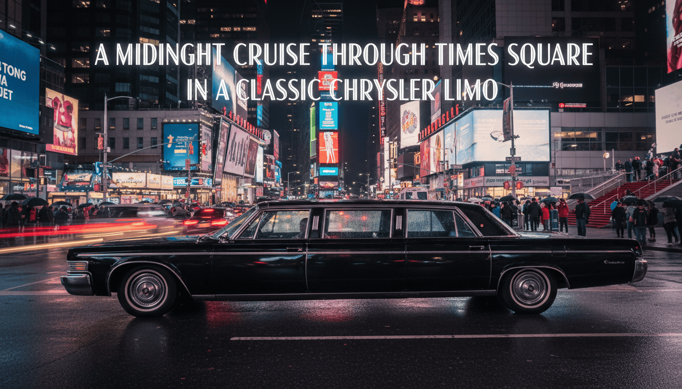 A midnight cruise through Times Square in a classic Chrysler Limo