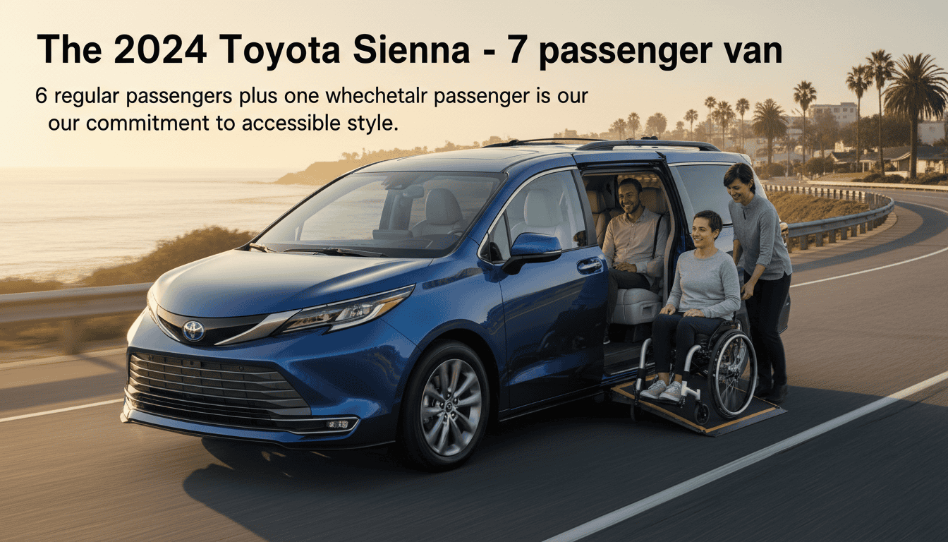 The 2024 Toyota Sienna – 7 passenger van 6 regular passengers plus one wheelchair